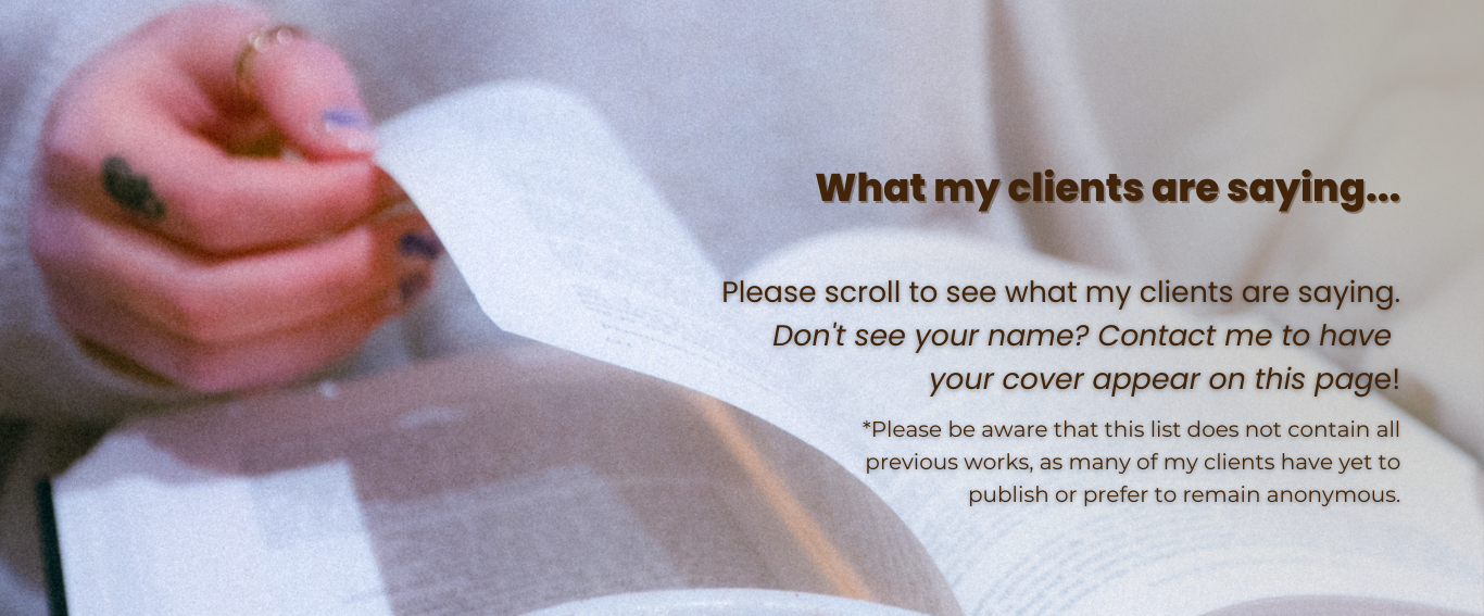 Please scroll down to see a selection of my published editorial work, where I have been the editor. This list does not represent all of my projects, as many clients are still in the process of querying literary agents or publishing.